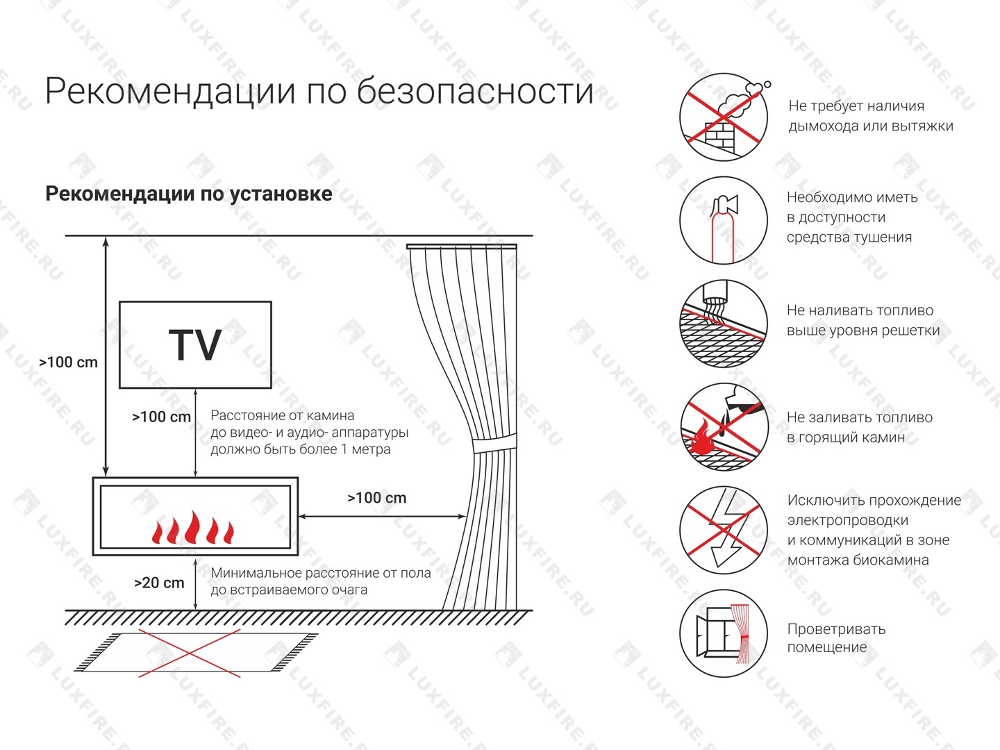 Применена технология лазерной сварки «Laser Tech».Топливный блок надежно загерметизирован внешним корпусом. Вытяжка и дымоход не требуется, но после использования проветривайте помещение !